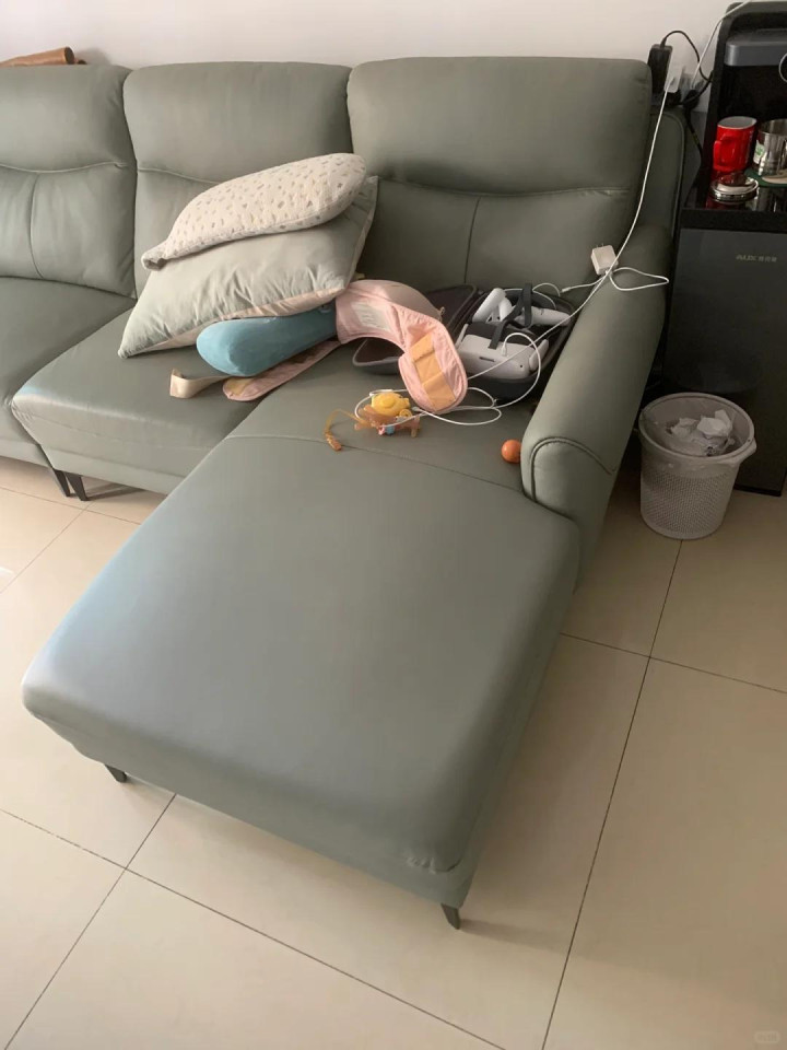 时间长了,贵妃位成了堆放杂物的地方,上面堆满抱枕、外套、购物袋,想坐都没地方坐。