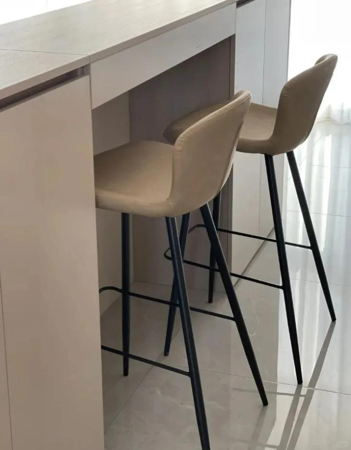 之前看别人家里装吧台配吧椅,觉得特别有情调,想着平时在吧台喝个小酒、吃个早餐,多有氛围感。脑子一热就跟风装了吧台,还买了两把吧椅。
