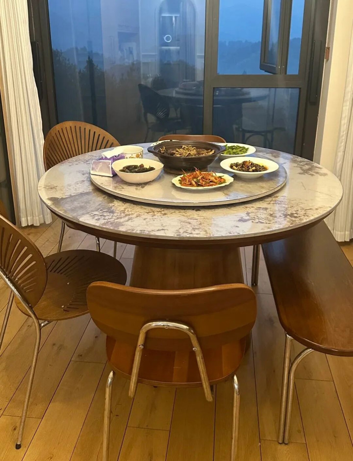 买圆形转盘餐桌,一开始是觉得家里来人聚餐,转着盘夹菜方便,而且看着比方形桌显档次。可住了一年才明白,这桌子就是“中看不中用”。