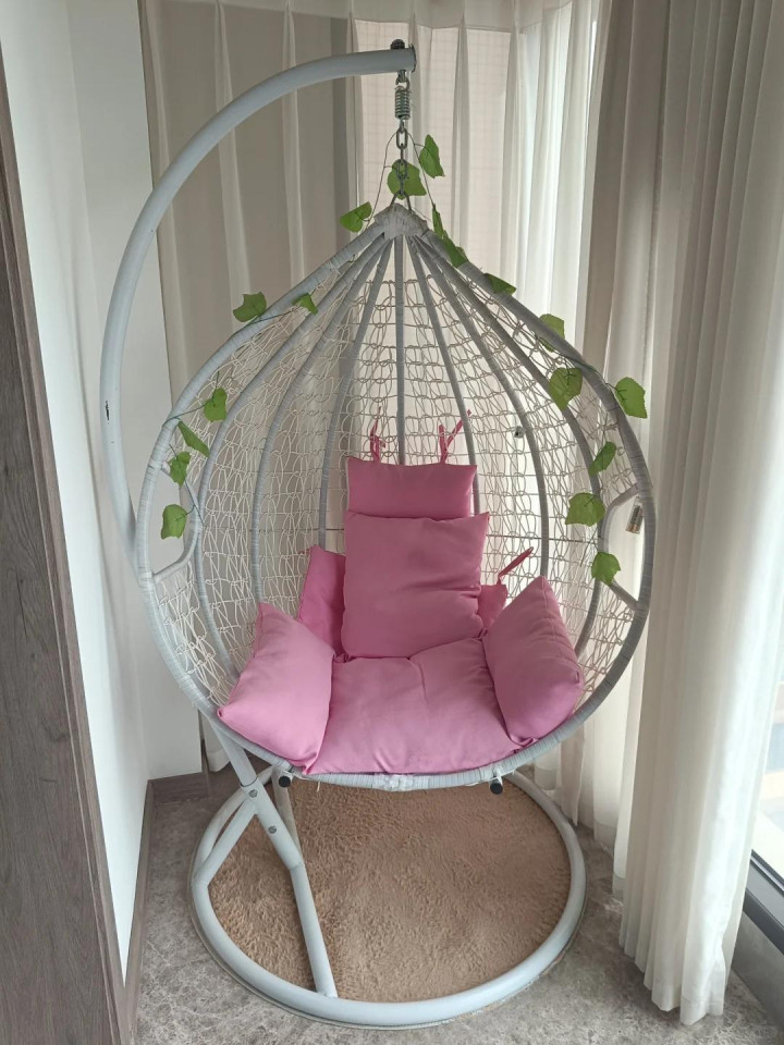 而且吊篮看着舒服,坐上去才发现特别不实用,没有靠背支撑,坐久了腰酸背痛,想躺一会儿还得蜷着身子,比折叠椅差远了。